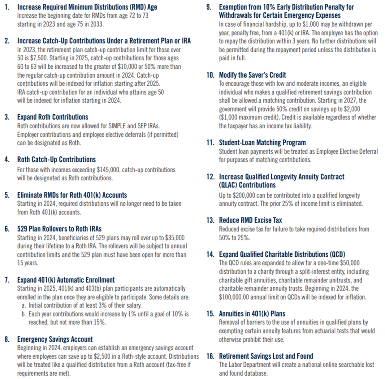 While we felt the SECURE Act 1.0 provisions hurt generational wealth transfer, the 2.0 provisions provide many positive changes that we’ll look to implement into our client and business plans immediately.
