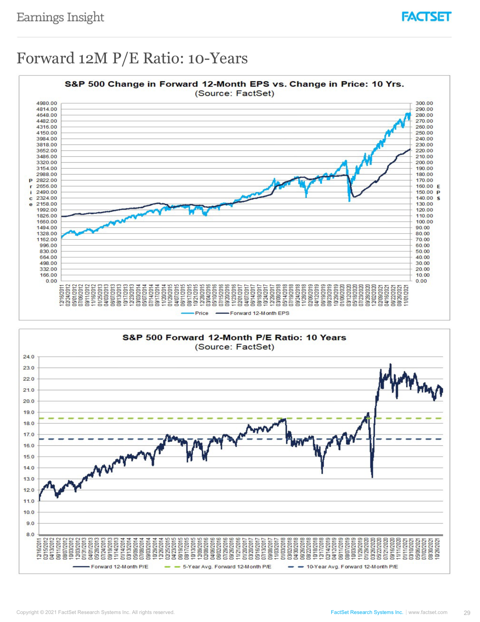Fact Set estimates the forward valuation on the S&P 500 is 21.2x earnings estimates. That is above the 10-year average of 16.6x.
